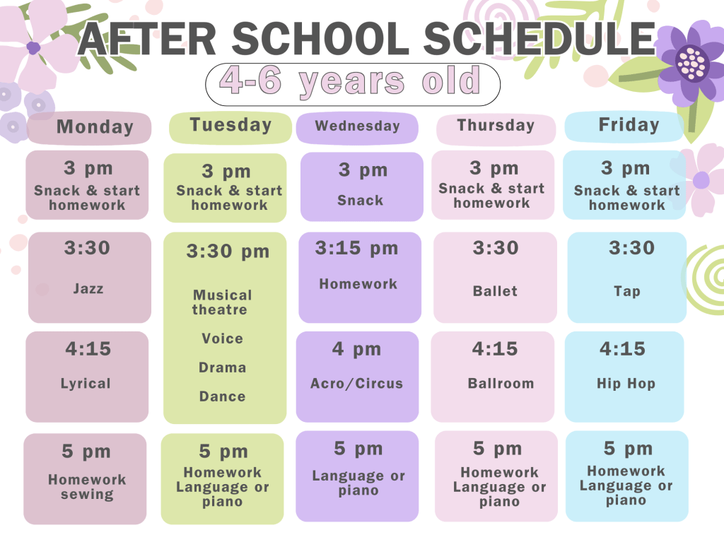 • Some specialized classes (language, piano, etc.) are not listed in the base schedule as they are assigned based on student level. These sessions will be integrated into each child’s open schedule blocks.
