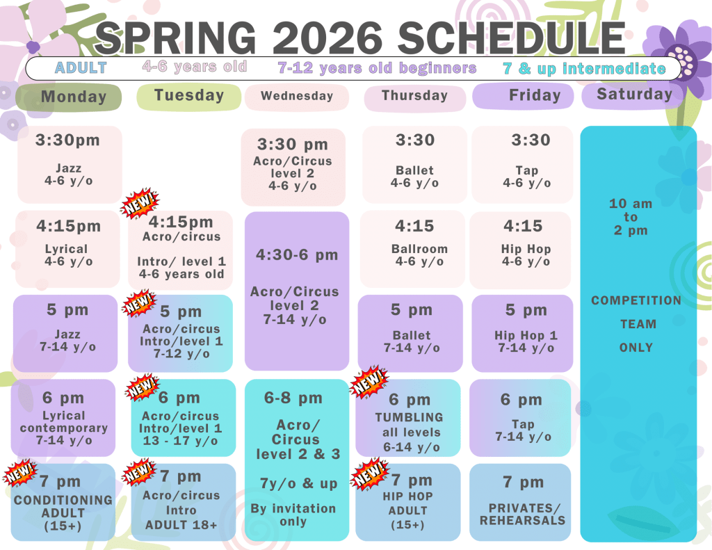 If your child takes both dance and circus, just add the circus price + the dance price for the total